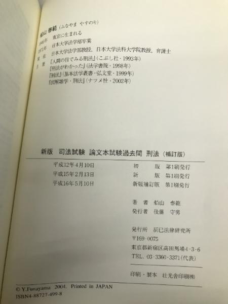 司法試験論文本試験過去問刑法 新版補訂版 辰已法律研究所 船山 泰範