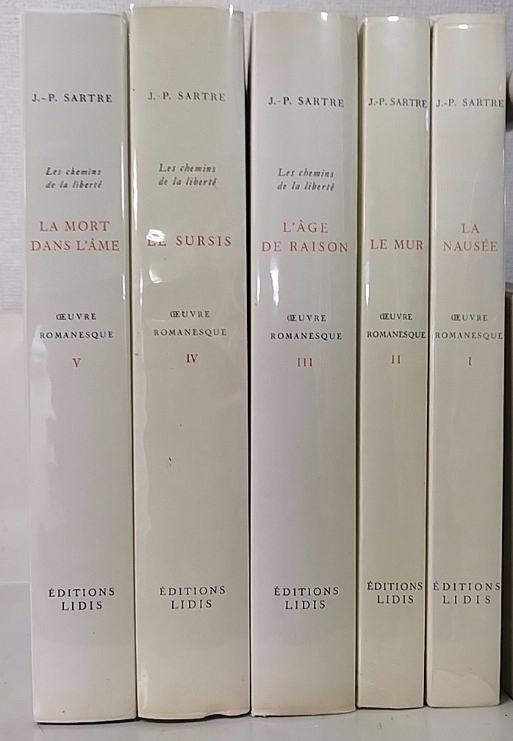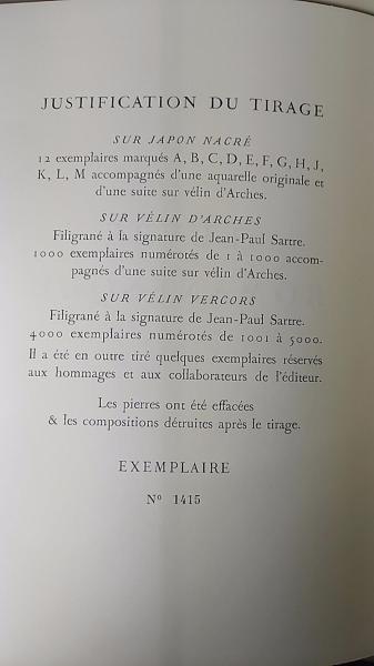Oeuvre Romanesque. Tome 1-5. [Par Jean-Paul Sartre, lithographies originales de Walter Spitzer]. Tome 1: La Nausée; Tome 2: Le Mur; Tome 3: L'Age de Raison; Tome 4: le Sursis; Tome 5: La Mort dans l'Ame.