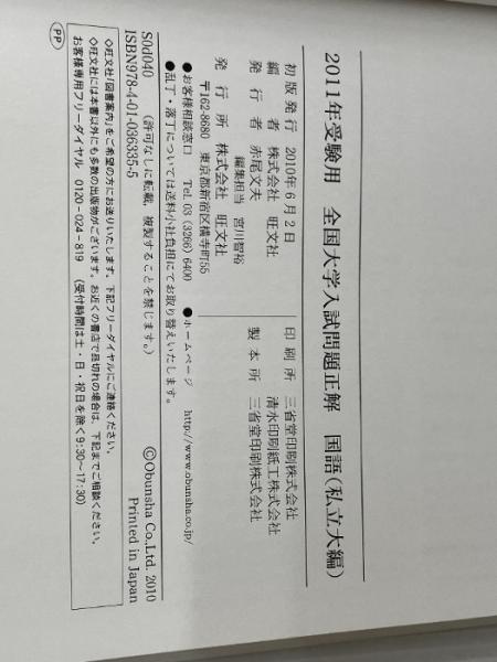 全国大学入試問題正解国語 私立大編 2011年受験用 (2011年受験用全国大学入試問題正解) 旺文社 旺文社