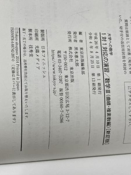 1対1対応の演習/数学3 曲線・複素数編 (大学への数学 1対1シリーズ) 東京出版 東京出版編集部