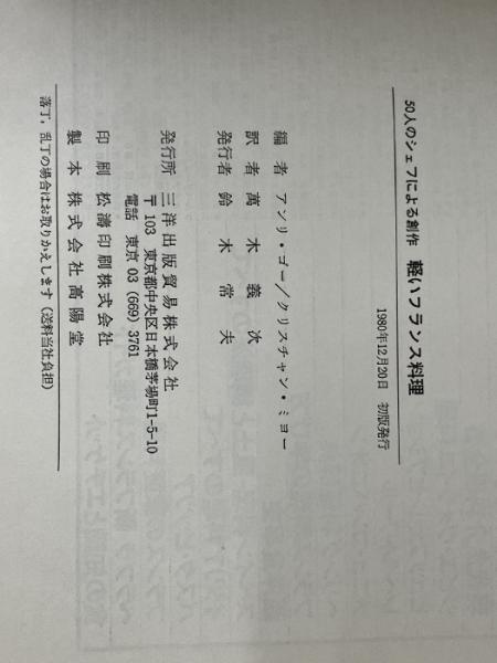 軽いフランス料理―ヨーロッパ50人のシェフによる創作 (1980年) 三洋出版貿易 万木 義次
