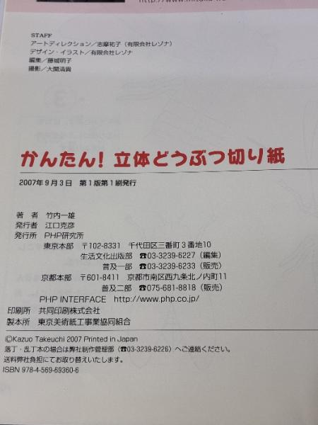 【※イタミ有り】かんたん! 立体どうぶつ切り紙 PHP研究所 竹内 一雄