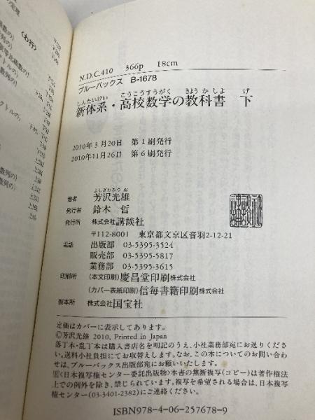 新体系・高校数学の教科書 下 (ブルーバックス 1678) 講談社 芳沢 光雄