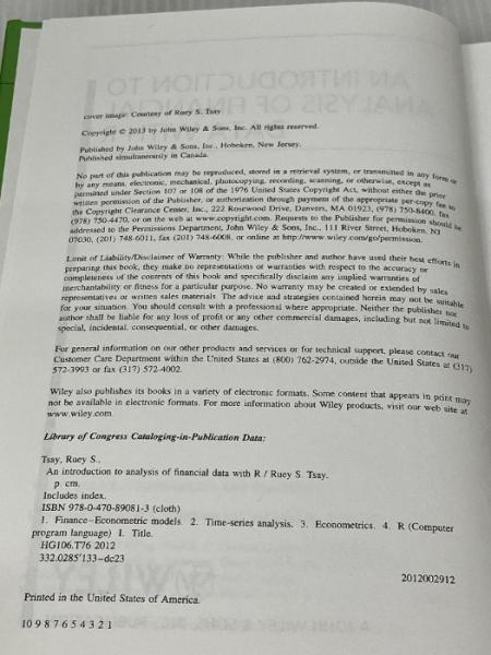 An Introduction to Analysis of Financial Data with R (Wiley Series in Probability and Statistics) Wiley Tsay, Ruey S.