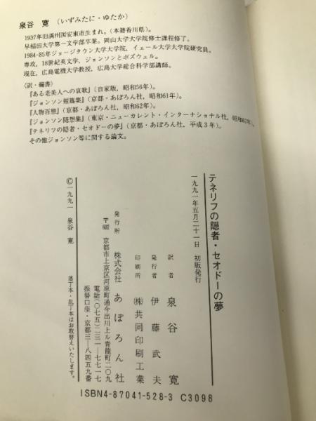 テネリフの隠者・セオドーの夢―サミュエル・ジョンソン随筆集 あぽろん社 サミュエル・ジョンソン