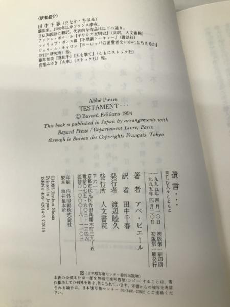 遺言…: 苦しむ人々とともに 人文書院 アベ ピエール