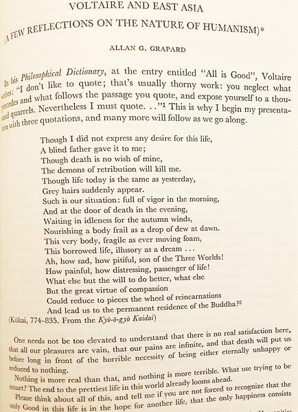 ・ヴォルテールと東アジア:ヒューマニズムの本質についての若干の考察 / Allan G. Grapard (歴史家 アラン・G・グラパール)