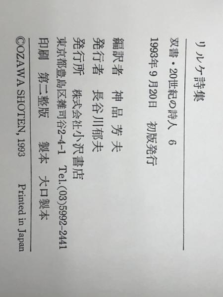 リルケ詩集 (双書・20世紀の詩人 6) 小沢書店 リルケ