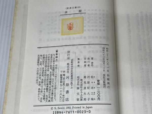 水屋 (茶道文庫 23) 河原書店 佐々木 三味