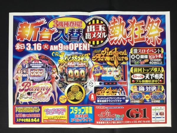〈パチンコ店・新聞折り込み広告〉名古屋市中川区 デルグループ(十四山店・蟹江店)G1『新台入替・熱狂祭』
