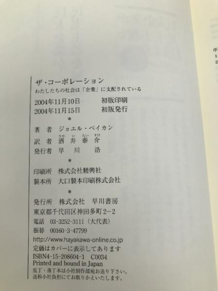 ザ・コーポレーション 早川書房 ジョエル・ベイカン