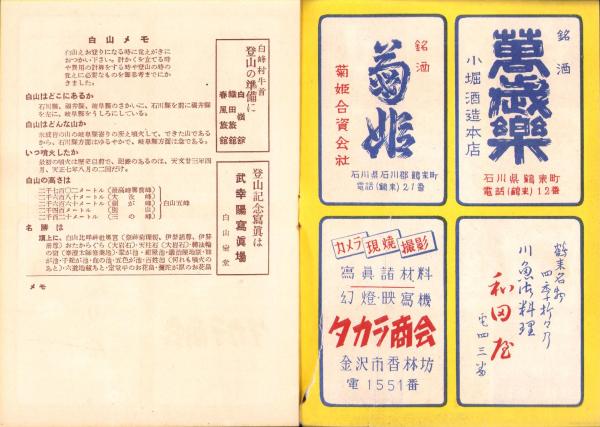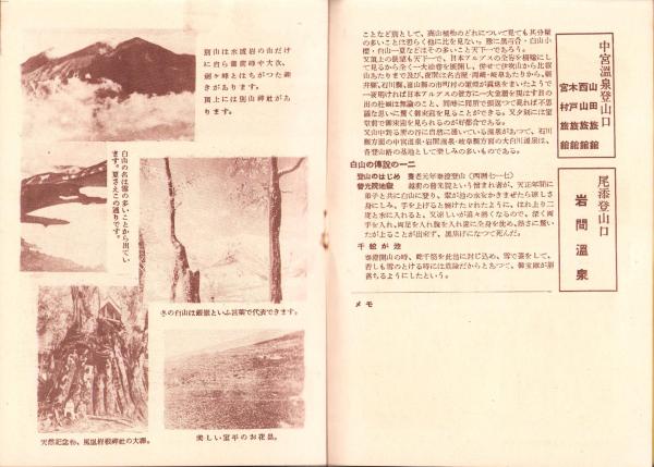 • 著者 〈白山メモ、登山コース、旅館と温泉、白山案内の強力組合及料金、白山室堂〉