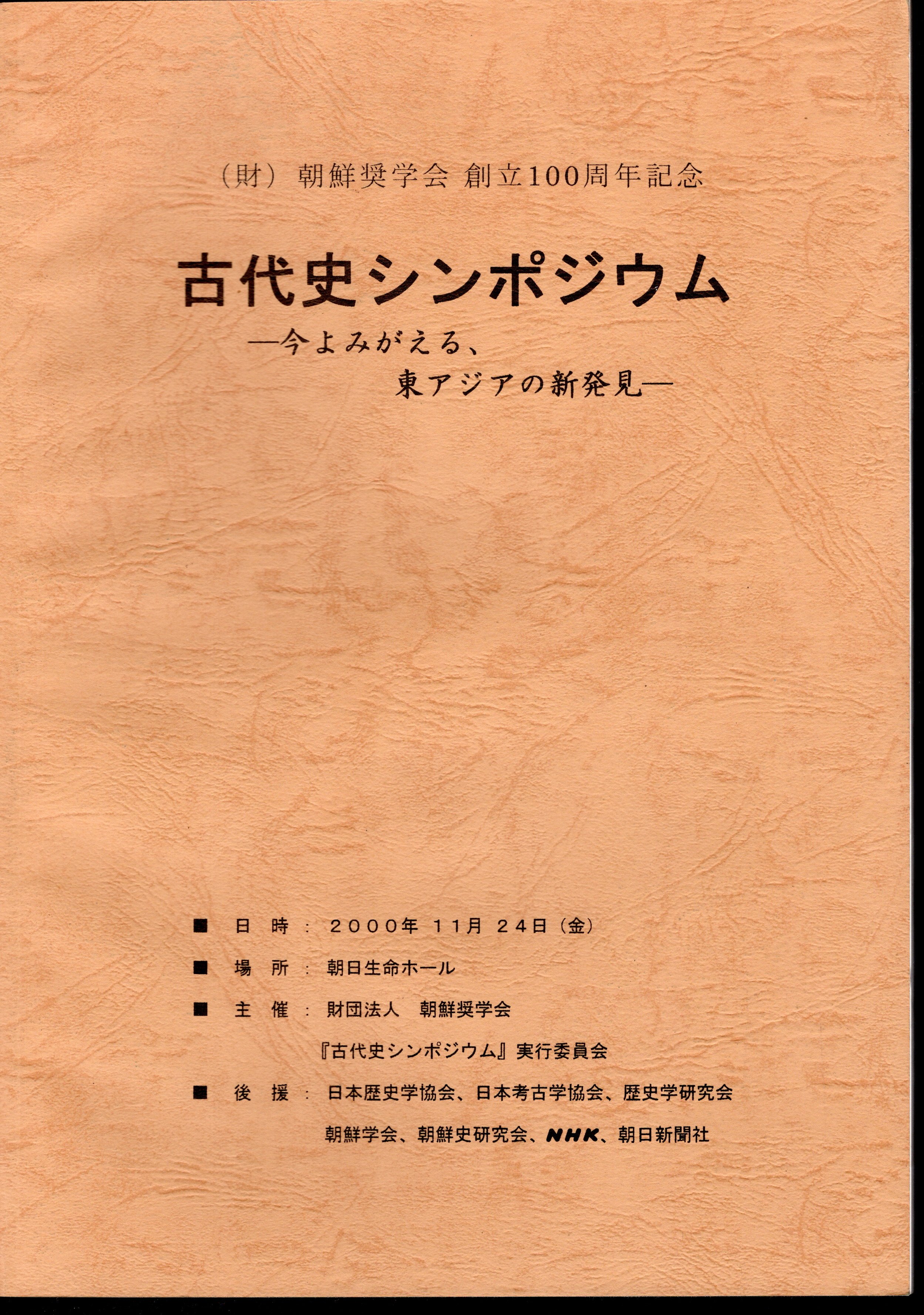 (株)朝鮮奨学会創立100周年記念 古代史シンポジウム-今よみがえる、東アジアの新発見