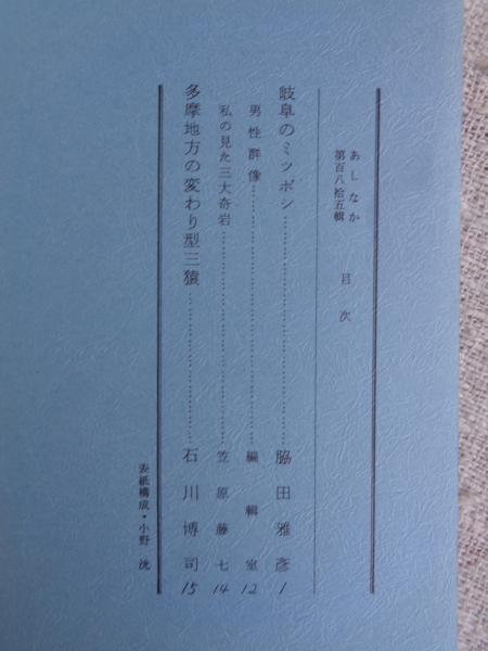 あしなか(第185輯)●岐阜のミツボシ/男性群像/私の見た三大奇岩 多摩地方の変わり型三猿。