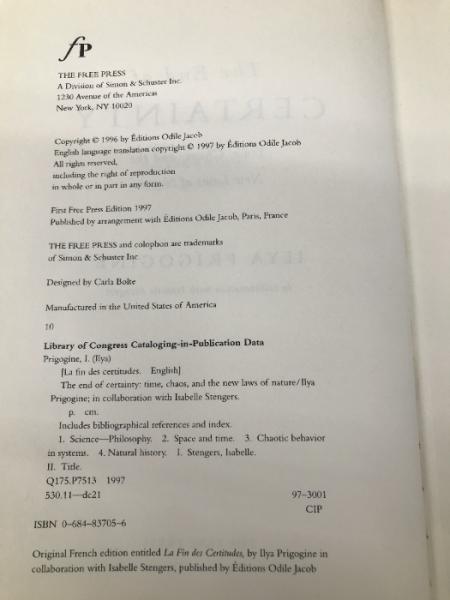 The End of Certainty Free Press Prigogine, Ilya