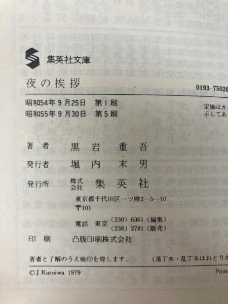 夜の挨拶 (集英社文庫) 集英社 黒岩 重吾