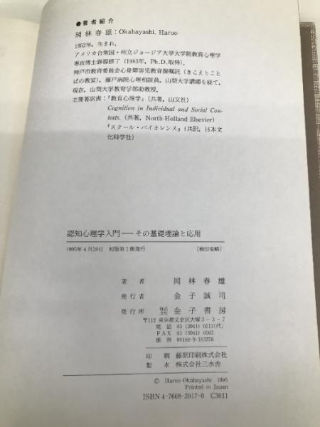 認知心理学入門: その基礎理論と応用 金子書房 岡林 春雄