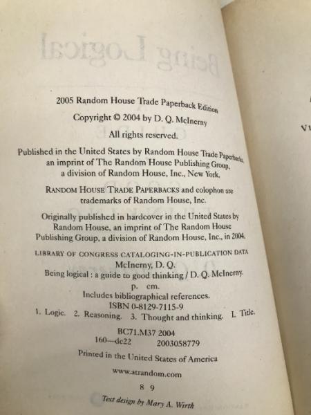 Being Logical: A Guide to Good Thinking Random House Trade Paperbacks McInerny, D.Q.