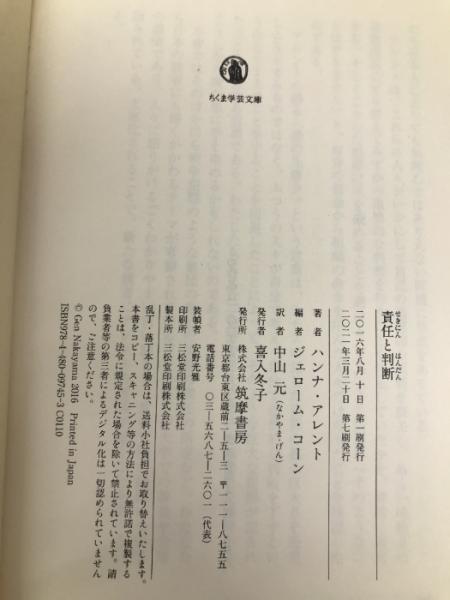 責任と判断 (ちくま学芸文庫) 筑摩書房 ハンナ アレント