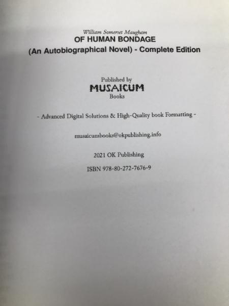 Of Human Bondage - Complete Edition Musaicum Books Maugham, W. Somerset