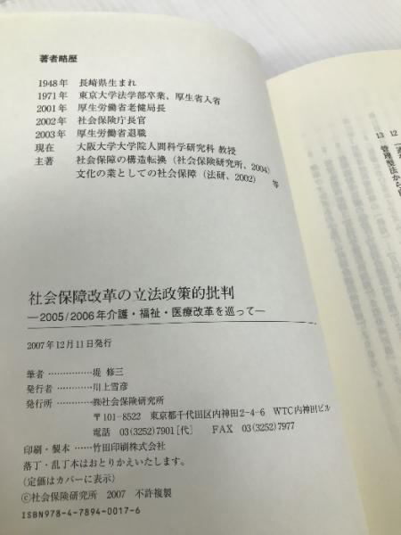 社会保障改革の立法政策的批判: 2005/2006年介護・福祉・医療改革を巡って 社会保険研究所 堤修三