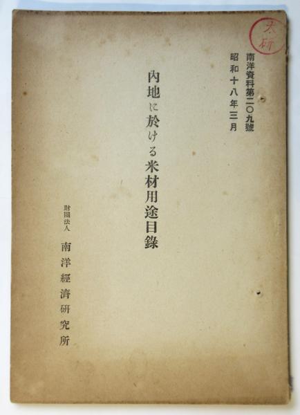 内地に於ける米材用途目録 南洋資料第209号