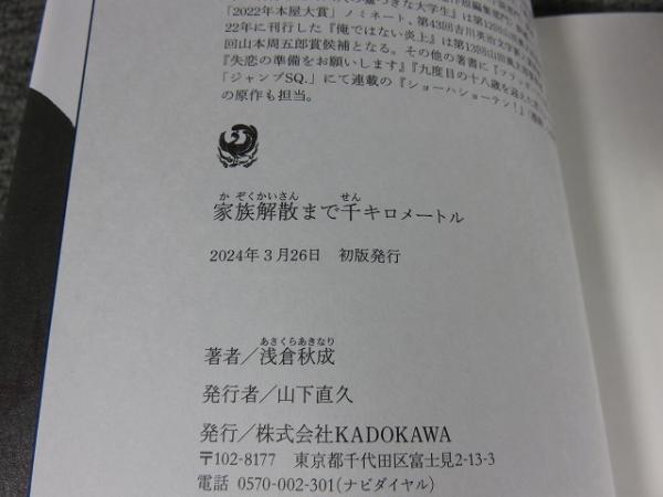 家族解散まで千キロメートル「署名入(直筆サイン)」
