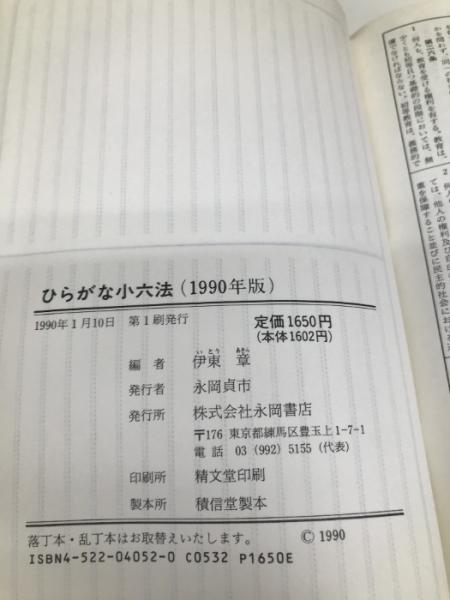 ひらがな小六法1990年版 永岡書店