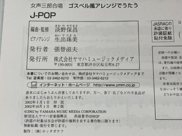 ゴスペル風アレンジでうたう J-POP(女声三部合唱) ヤマハミュージックエンタテイメントホールディングス 淡野 保昌