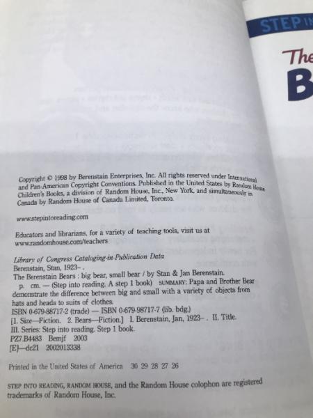 The Berenstain Bears' Big Bear, Small Bear Random House Books for Young Readers Berenstain, Stan