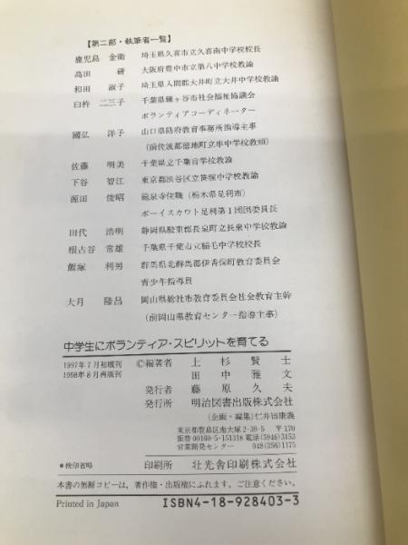 中学生にボランティア・スピリットを育てる 明治図書出版 上杉 賢士