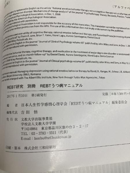 REBT研究 別冊 REBTうつ病マニュアル 文教大学出版事業部 日本人生哲学感情心理学会「REBTうつ病マニュアル」編集委員会
