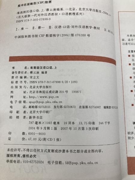 准高級漢語口語 上冊(中国語) 北京大学出版社 蔡 雲凌