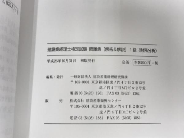 建設業経理士検定試験問題集解答&解説 (1級 財務分析) 建設産業経理研究機構 建設産業経理研究機構
