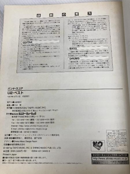 BS U2ベスト (バンド・スコア) シンコーミュージック