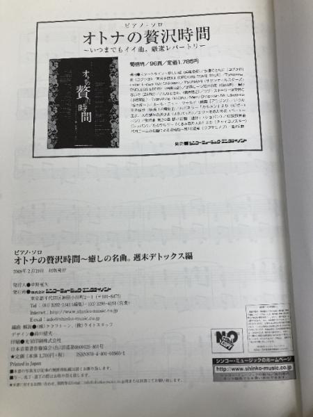 ピアノソロ オトナの贅沢時間~癒しの名曲。週末デトックス編 (ピアノ・ソロ) シンコーミュージック クラフトーン