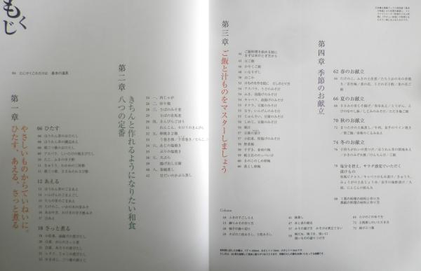 とにかくこれだけは/基本の道具 第一章/やさしいものからていねいに。ひたす、あえる、さっと煮る ひたす・あえる・さっと煮る 第二章/きちんと作れるようになりたい和食・八つの定番 第三章/ご飯と汁ものをマスターしましょう 第四章/季節のお献立 春・夏・秋・冬のお献立 他
