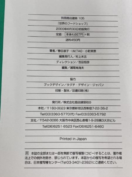世界のフードショップ: アップスケール・スーパーマーケットとフードショップ (別冊商店建築 105) 商店建築社 春日 淑子