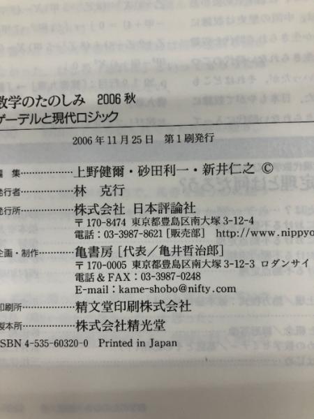 数学のたのしみ 2006秋: フォーラム:現代数学のひろがり 日本評論社 上野 健爾