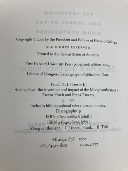 Analog Days: The Invention and Impact of the Moog Synthesizer Harvard University Press Pinch, Trevor