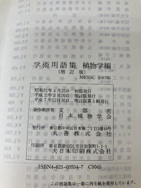 【イタミ有り】学術用語集 植物学編 増訂版 丸善出版 文部省