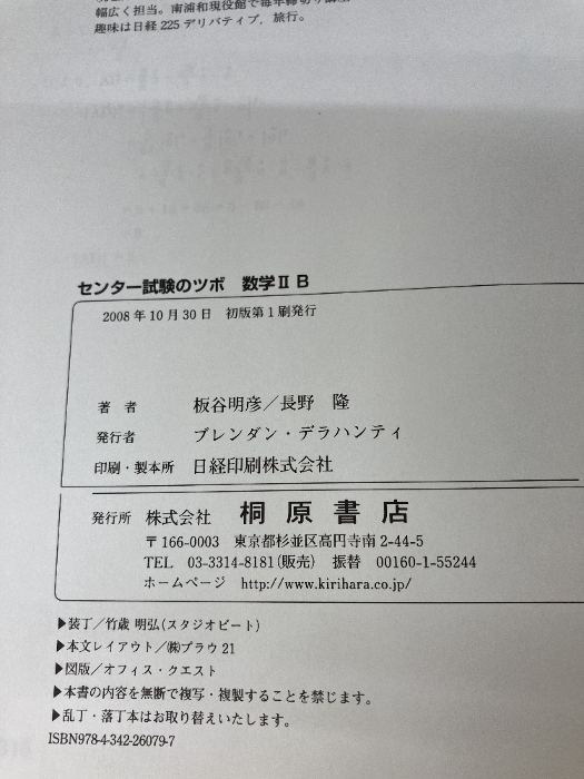 【カバーなし】【イタミ有り】センター試験のツボ数学2B 桐原書店 板谷 明彦