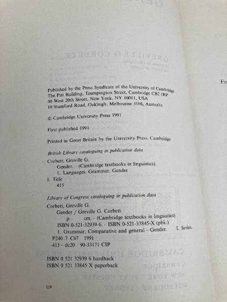 Gender (Cambridge Textbooks in Linguistics) Cambridge University Press Corbett, Greville