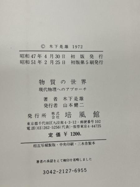 【※カバー欠品・線引きあり】物質の世界: 現代物理へのアプローチ 培風館 木下 是雄