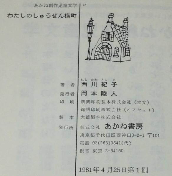 • 解説 あかね創作児童文学18 西川紀子 わたしのしゅうぜん横町 あかね書房 1981年4月第1刷 A5判変型ハードカバー.