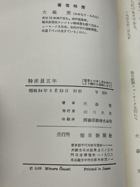 特派員五年―日米外交の舞台裏 (1959年)  毎日新聞社  大森 実