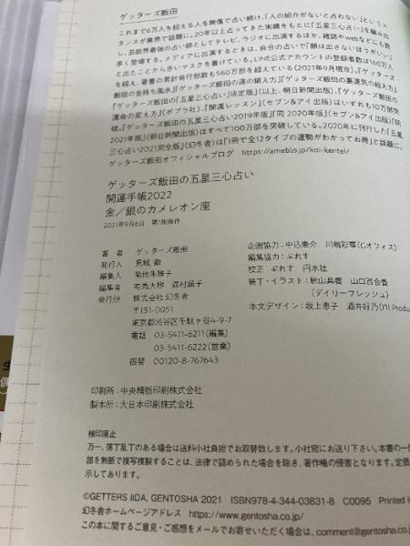 ゲッターズ飯田の五星三心占い 開運手帳2022 金・銀のカメレオン座 幻冬舎 ゲッターズ 飯田