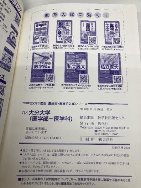 大分大学(医学部〈医学科〉) [2009年版 医歯薬・医療系入試シリーズ] 教学社 教学社出版センター