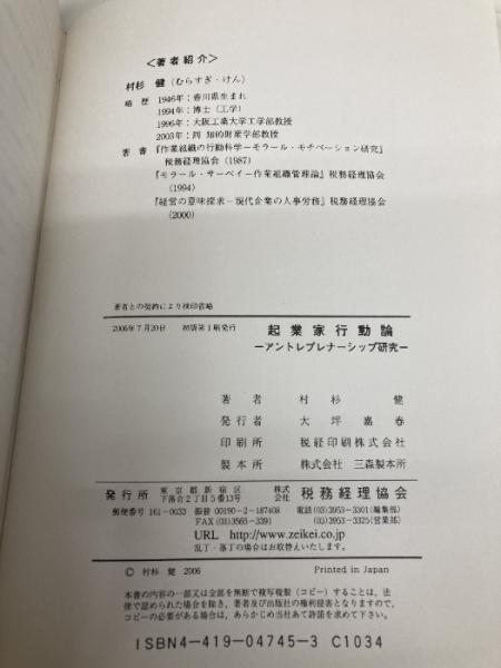 起業家行動論: アントレプレナーシップ研究 税務経理協会 村杉 健