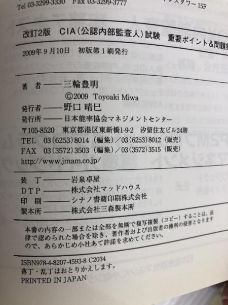 改訂2版 CIA(公認内部監査人)試験重要ポイント&問題集 日本能率協会マネジメントセンター 三輪 豊明